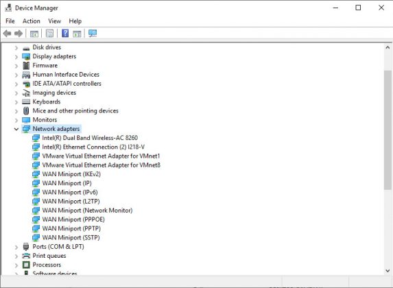 Có thể kiểm tra trong Device Manager bằng cách bấm phím Start (phím Windows), gõ từ khóa Device Manager rồi click vào. Trong phần Network Adapter, nếu không phát hiện thấy thiết bị wifi của bạn thì chứng tỏ card wireless của bạn đã hư.