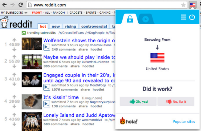 Có rất nhiều nhà cung cấp dịch vụ VPN bao gồm cả trả phí miễn phí. Bạn có thể xem danh sách các dịch vụ VPN tốt nhất này để chọn cho mình một VPN phù hợp. Hola là một trong những dịch vụ VPN hiệu quả bạn có thể sử dụng. Dịch vụ cho phép bạn duyệt web riêng tư và không phải kiểm duyệt, và dịch vụ có cả tiện ích mở rộng dành cho người dùng Chrome và Firefox.