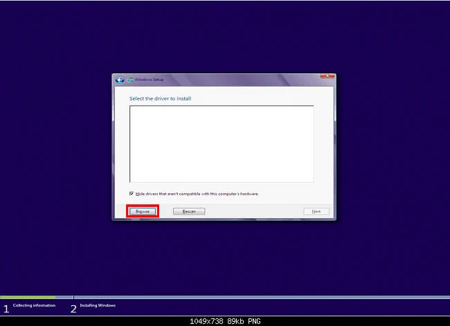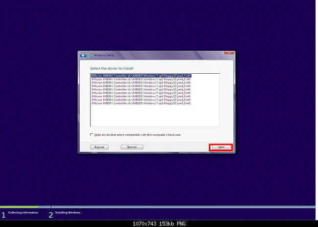 Bước 7: Đánh dấu tick vào mục “Hide driver that are not compatible with hardware on this computer” rồi nhấn click Next.