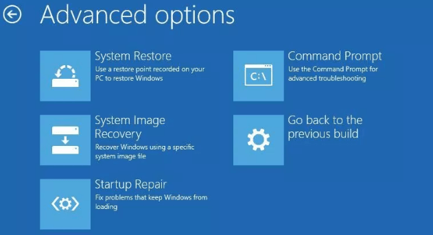 Nếu vấn đề lỗi do hệ điều hành (không phải phần cứng). Lúc này file sao lưu hệ điều hành mà bạn đã tạo sẽ thực sự hữu ích..Sẽ có mục Advanced starup cho bạn lựa chọn ở màn hình xanh này. Hãy chọn vào nó để vào Advanced starup luôn.