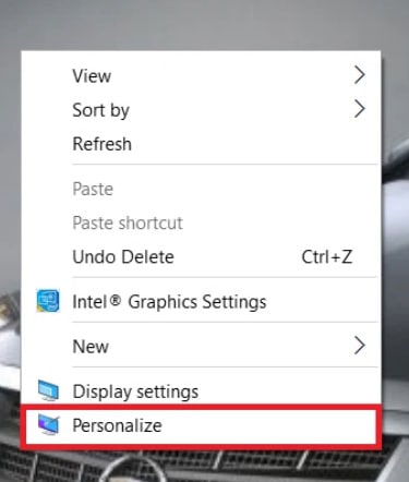 • Kích chuột phải trên màn hình nền => chọn Personalize