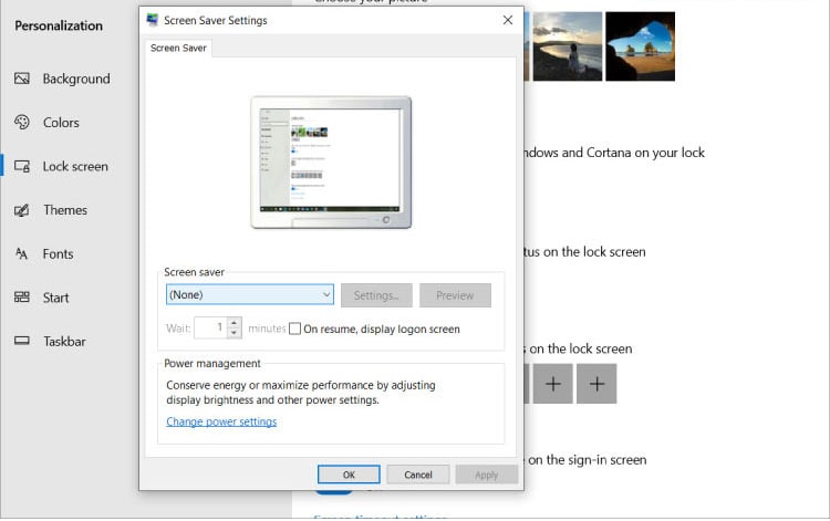 Ngoài tắt chế độ màn hình, bạn có thể bật chế độ màn hình chờ hoặc cài đặt chế độ màn hình chờ trong win 10 bằng Screen Saver. Thực hiện tương tự các bước như trên để mở hộp thoại Screen Saver Settings.