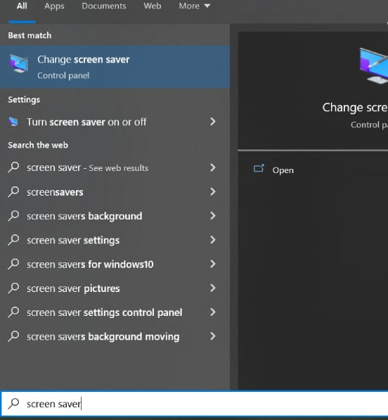 • Gõ từ khóa Screen Saver vào ô tìm kiếm và chọn Change Screen Saver.