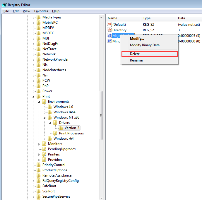 HKEY_LOCAL_MACHINE\SYSTEM\CurrentControlSet\Control\Print\Environments\Windows NT x86\Drivers\Version-x