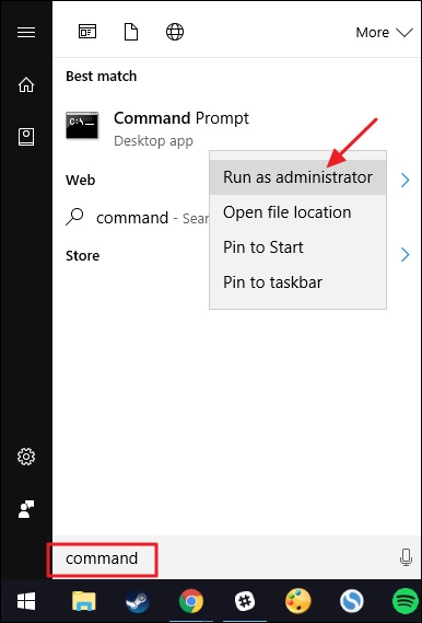 Nếu không chắc chắn về việc lên trình chạy Disk Check, bạn có thể dễ dàng kiểm tra trong Command Prompt. Chạy Command Prompt với quyền admin bằng cách nhấn Start và gõ “command prompt“, click chuột phải vào kết quả và chọn “Run as administrator“.