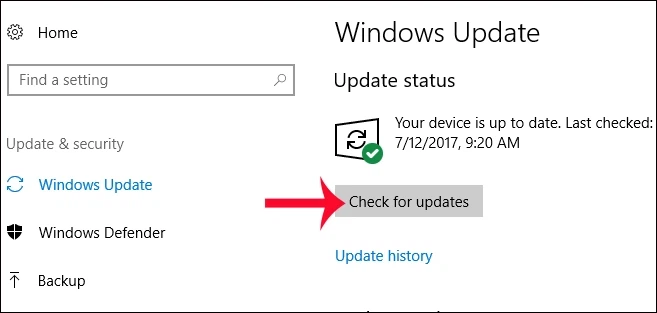 Trong cửa sổ mới hiện ra, bạn hãy bấm vào nút Check for updates để Windows thực hiện thao tác kiểm tra các bản cập nhật mới nhất. Nếu nhận được các bản cập nhật này thì bạn hãy chờ đợi đến khi chúng được cài đặt xong và khởi động lại máy tính để các thay đổi có hiệu lực.