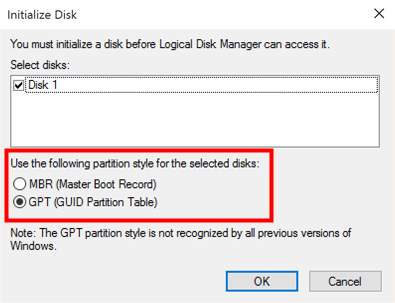 Chọn partition style cho các đĩa đã chọn. Chúng tôi khuyên bạn nên chọn GPT nếu bạn đang sử dụng Windows 10, và MBR nếu không thì. Sau đó đánh OK.